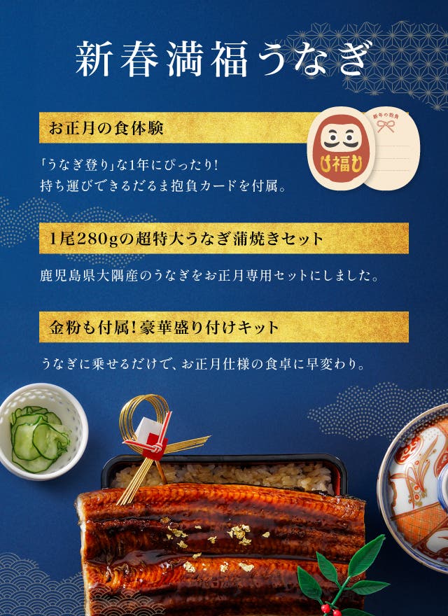 累計販売4万尾を記録するみさらの「満腹うなぎ」シリーズからお正月にぴったりな『新春満福うなぎ』が登場!