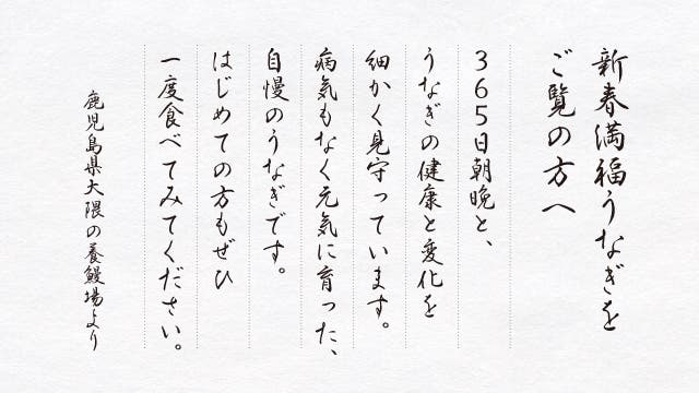 - 【創業20年】鹿児島県大隈の養鰻場が、約1年の飼育期間を経て育てた国産うなぎを使用