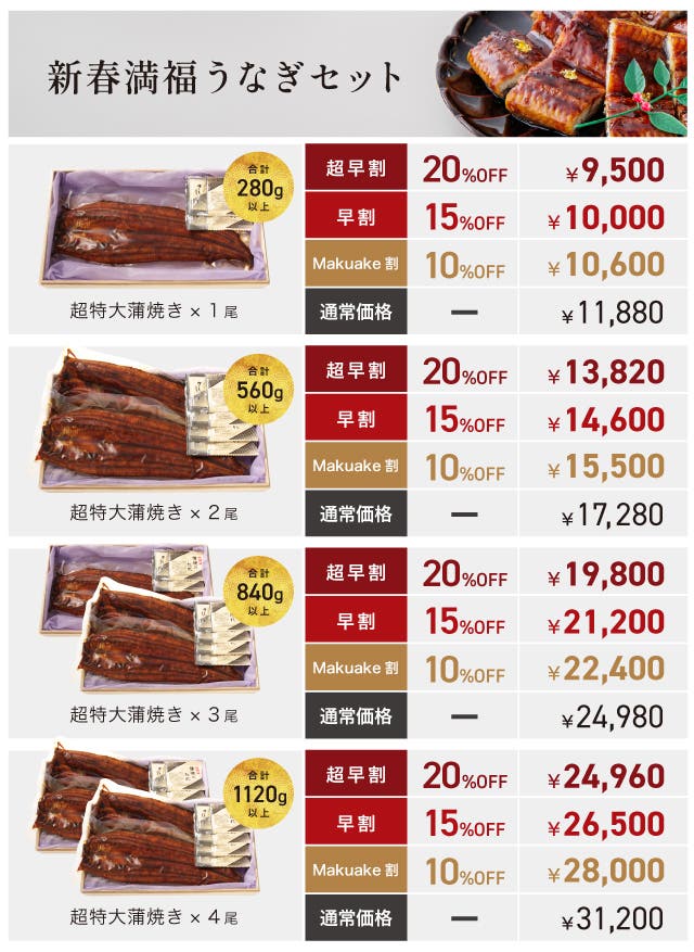 【Makuake割】新春満福うなぎ 4尾(合計 約1120g)