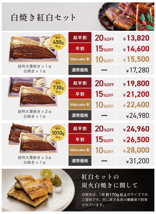 【Makuake割】新春満福うなぎ 1尾(白焼き紅白セット 合計 約450g)