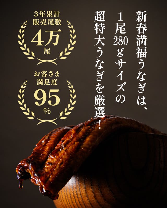 - 【超特大】1尾280g!満足度95%の「満腹うなぎ」を使用した2026年限定のお正月うなぎ