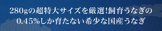 通常サイズが1尾220gの満腹うなぎは市場でも大きいサイズ感ですが、その中でも280gの超特大うなぎを『新春満福うなぎ』では厳選。