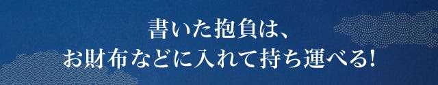 書いた抱負カードは、クレジットカード以下のサイズ感なので、お財布やスマホケースなどに入れて「書いた想い」を持ち運びできるようにしました。上質な厚めの紙を採用しているので大切に収納いただけます。