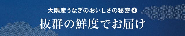 選別された超特大うなぎは、捌いてから焼き上げ、冷凍までの工程をわずか2時間で行います。圧倒的なスピードで加工することで、抜群の鮮度とおいしさをそのままにお届けします。