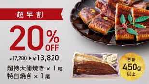 【超早割】新春満福うなぎ 1尾(白焼き紅白セット 合計 約450g)