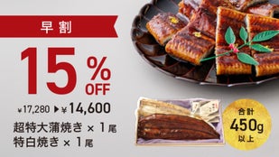 【早割】新春満福うなぎ 1尾(白焼き紅白セット 合計 約450g)