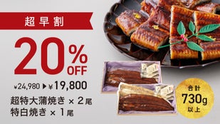 【早割】新春満福うなぎ 2尾(白焼き紅白セット 合計 約730g)