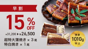【早割】新春満福うなぎ 3尾(白焼き紅白セット 合計 約1010g)