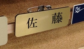 「佐藤」と書いた金色の表札をネームプレートにしました。佐藤さんはもちろん、佐藤さんじゃない人がつけても面白いと思います。