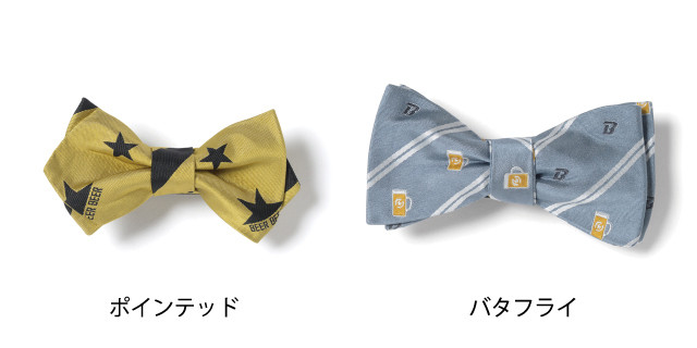 今回はビールとファッションを愛する人の為のネクタイ&ボウタイを作りました!ビールの色やモチーフを大胆かつ繊細にデザインしたラインナップです。
