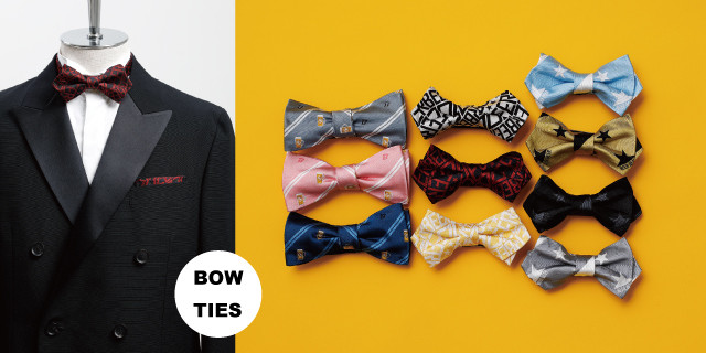 スーツに合うタイから、パーティーシーンで着用するタキシードに合うタイ、そしてカジュアルでも使えるタイまで揃えています。