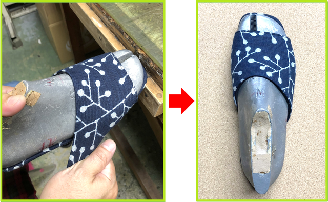 そして、ヒールに生地を巻き、底に貼り付けます!