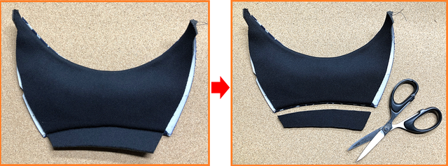 次に、つま先に当たる方もミシンをかけて余分な場所をハサミで切断します!