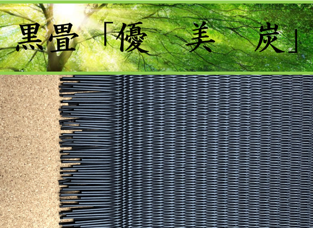 黒畳(優美炭)とは、松・杉・檜の間伐材をチップ状に粉砕して炭化させ、その炭材と樹脂 (ポリプロピレン)を優れた樹脂加工技術により、炭の機能(消臭効果)を失わない素材を開発する事に成功しました!(^o^)