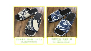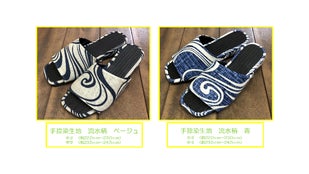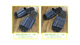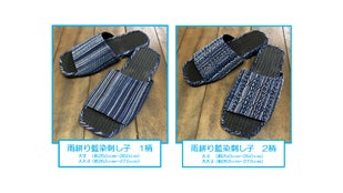 今回、静岡県浜松市を中心とした遠州織物の藍染め刺し子生地と、京都府亀岡市で手捺染(てなせん)を施した伝統的な技法で織られた生地を使用しました。