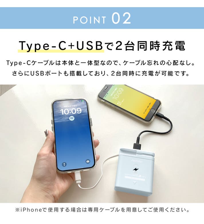 - 【2台同時充電対応(USB+Type-C)】いざという時に家族や複数端末に同時充電ができる