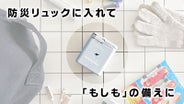 リチウム系バッテリーに比べ発熱や劣化のリスクが少なく、長期保管にも向いた設計。ペールブルーのやわらかな色合いと手のひらサイズで、非常用だけでなく普段使いにも取り入れやすいデザインです。