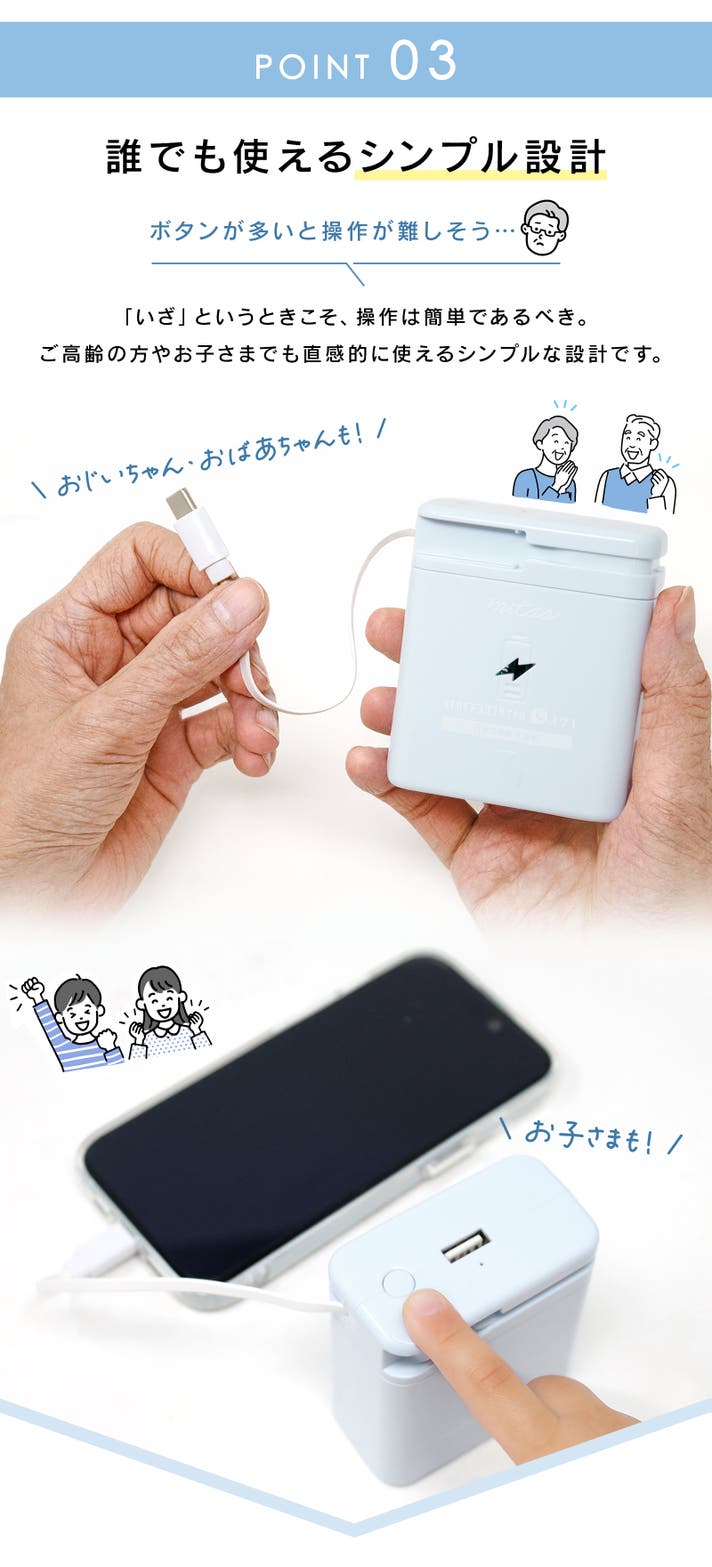 “命をつなぐ電源”を、もっと手軽に。もしもの夜も、あなたのスマホに灯りをともせるように——。そんな想いで、本製品をお届けします。