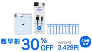 【超早割30%OFF】本体(Type-Cケーブル付属)1点+ライトニングケーブル1点+10年電池10本セット