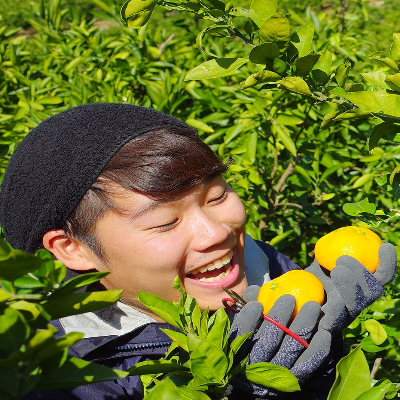 昨年、オンライン授業であることを利用し、各地の畑に行き、農作業を手伝う。そこでみっちゃんの畑に出会い、食べたみかんに感動。 今回のプロジェクトにも参加。