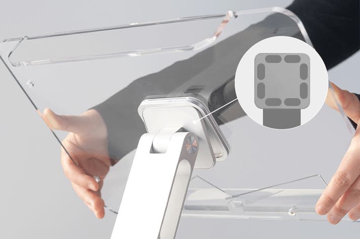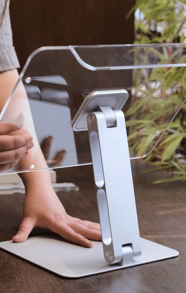 今回ご紹介する「マグネット式プレミアム読書台」は、 MagSafe方式でワンタッチ着脱が可能。 透明アクリル素材を採用し、デスクや画面まわりをいつでもすっきりと清潔に保ちます。