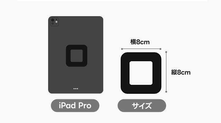 A. iPadのMagSafe磁石の位置と読書台の磁石の位置が異なるため、専用スクエアプレートを装着してからご使用ください。