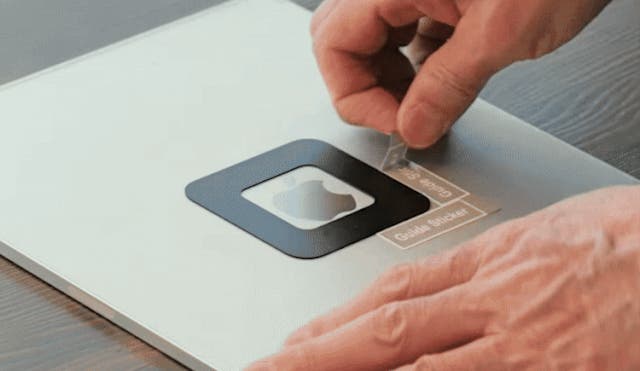 四角いマグネットシールは薄型設計のため、iPadに装着してもキーボード使用時に支障がありません。