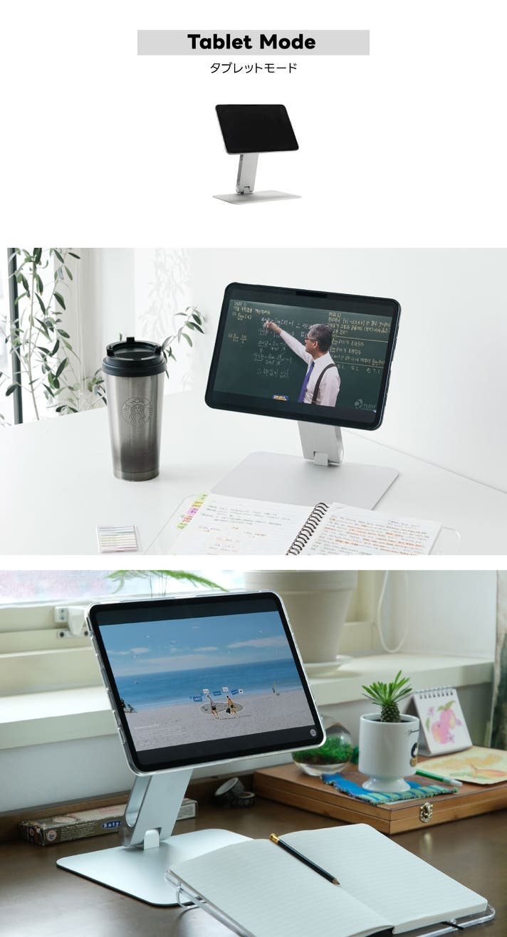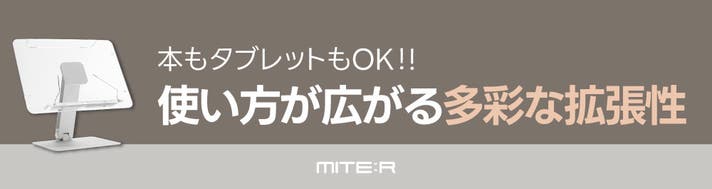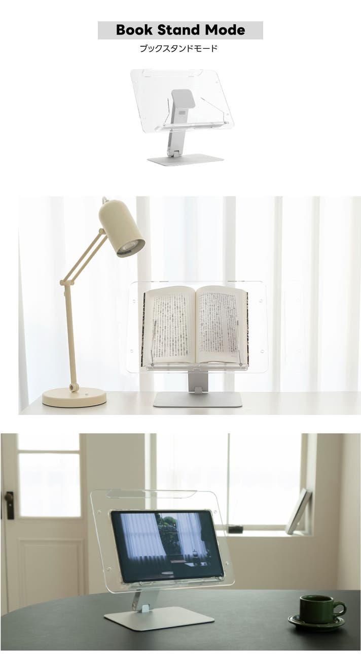 さらに角度調整機能により、長時間の使用でも正しい姿勢をサポート。 iPad、電子書籍リーダー、スマートフォンまで幅広く対応するマルチスタンドです。
