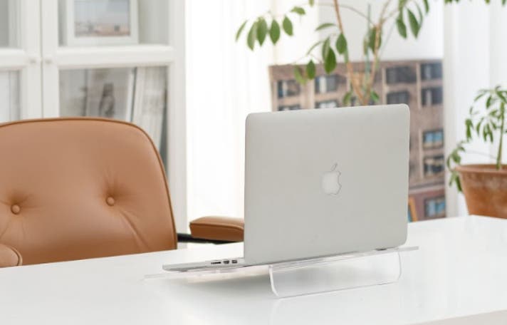 床に置いたノートパソコンの角度が合わず見づらいときは、アクリルプレートを使ってみてください。視界が広がり、快適に視聴できます。