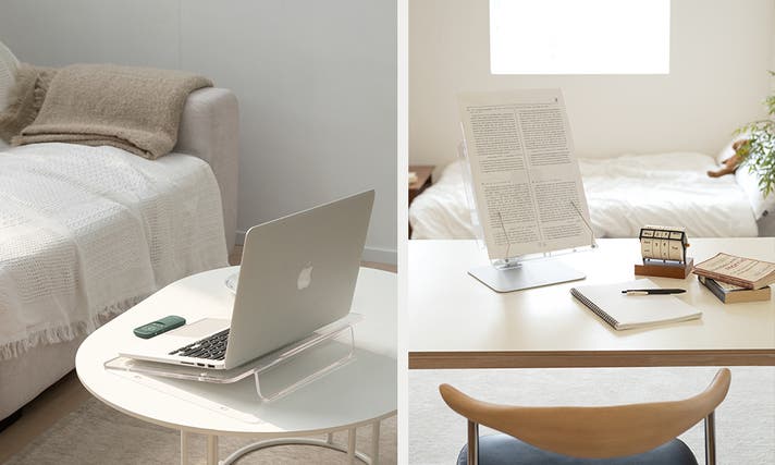 書籍やタブレットが触れる部分にはシリコンで仕上げ、長時間の使用でもズレずに安定します。