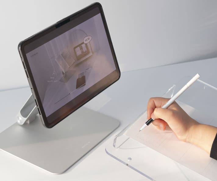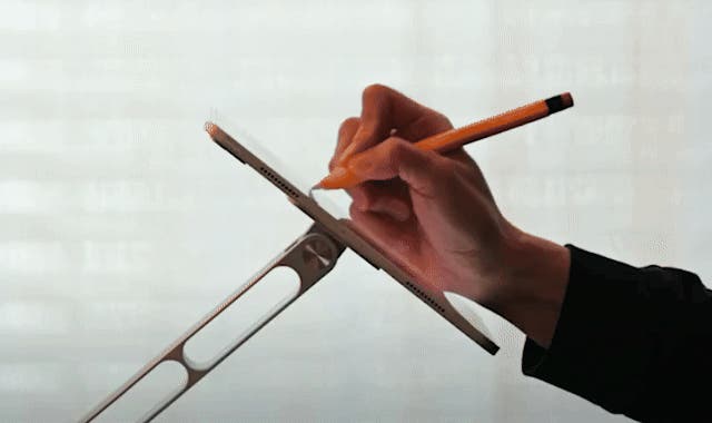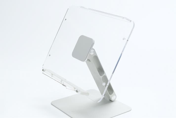 最も大きくて重いiPadサイズでも安定して設置でき、 イラストを描いたり筆記したりするのに最適な角度を、ユーザーの好みに合わせて自由に調整できます。
