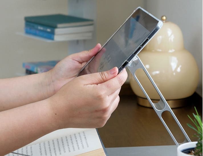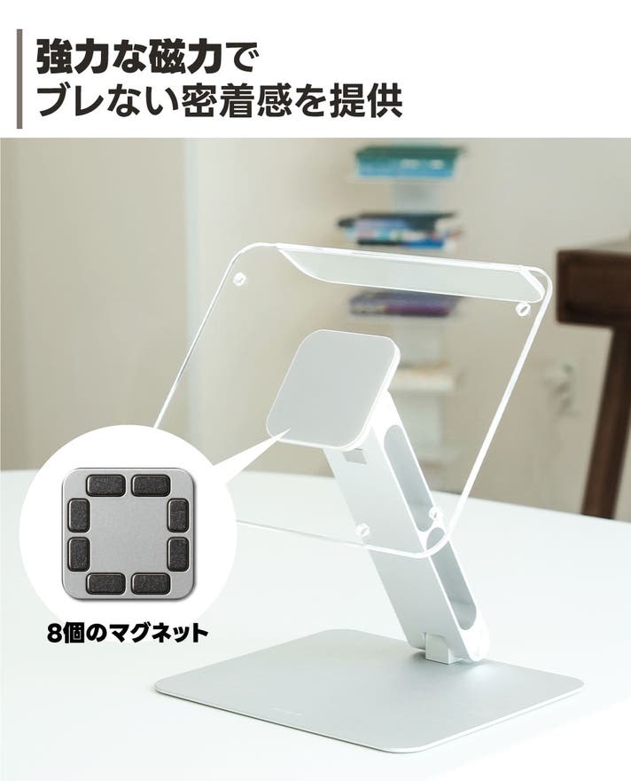 - マグネットで、誰でも簡単着脱、 本もタブレットもOK!使い方が広がる多彩な拡張性。