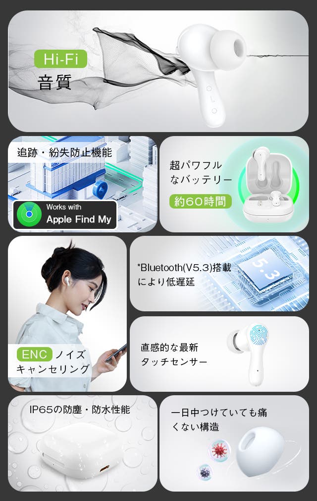 - 充電ケース併用で最大60時間再生!快適な装着感で長時間の使用でも快適な装着感を実現します!