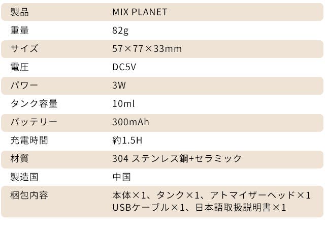 MIX PLANETは液体をミスト状に霧化され、分子が小さいために浸透力が高くなり、加湿効果をしっかりと感じることができます。