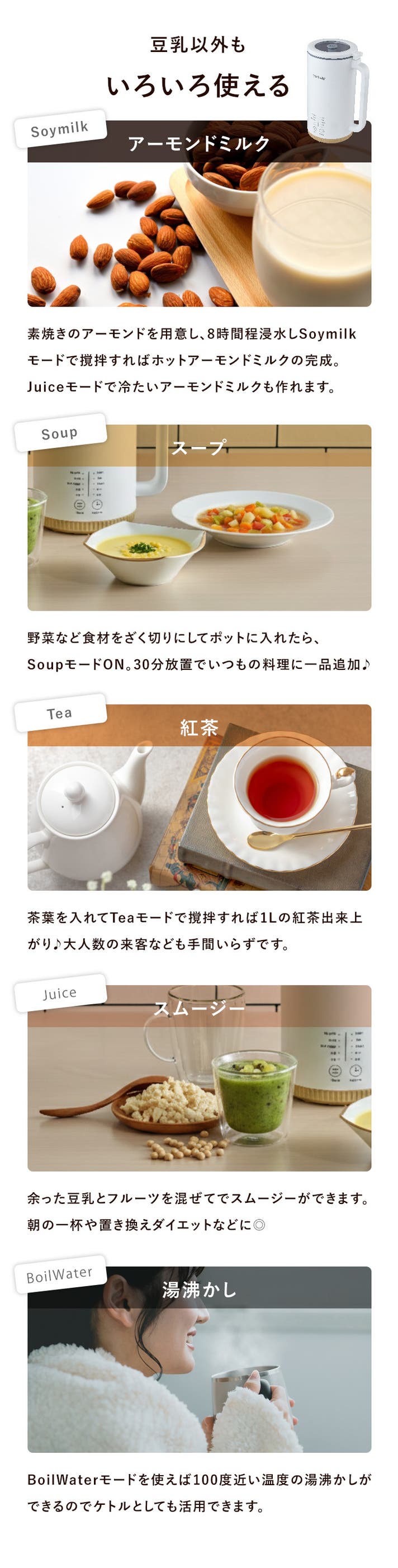 豆乳/アーモンドミルク/スムージー/ポタージュスープ/紅茶/お湯 など