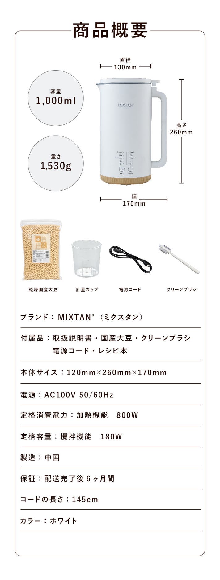 【早割】 MIXTAN°1台 + 美久丹(国産乾燥大豆)1kg