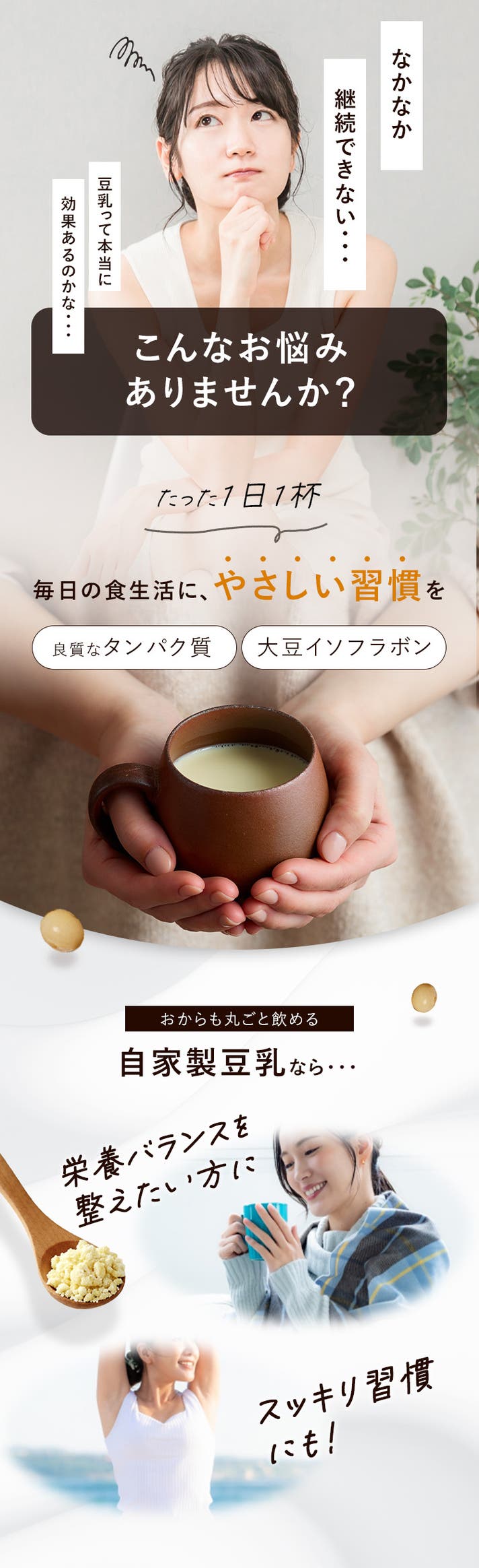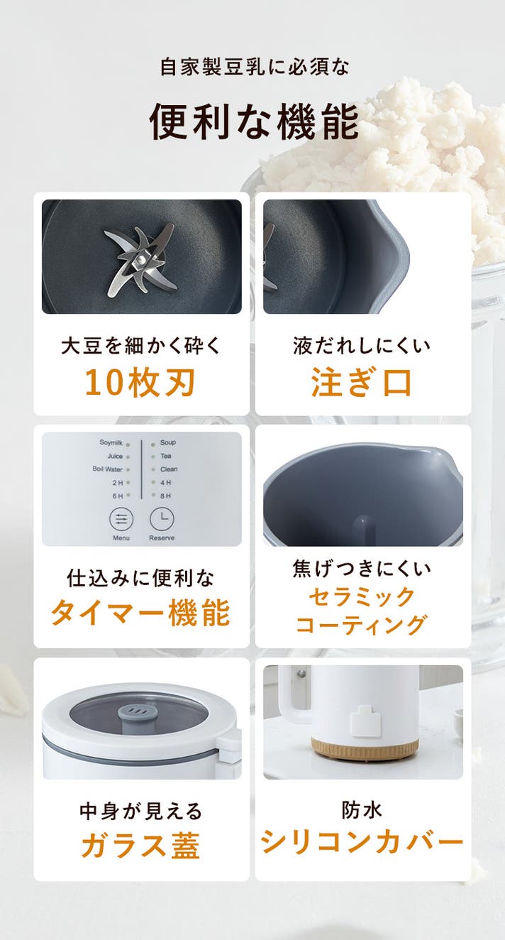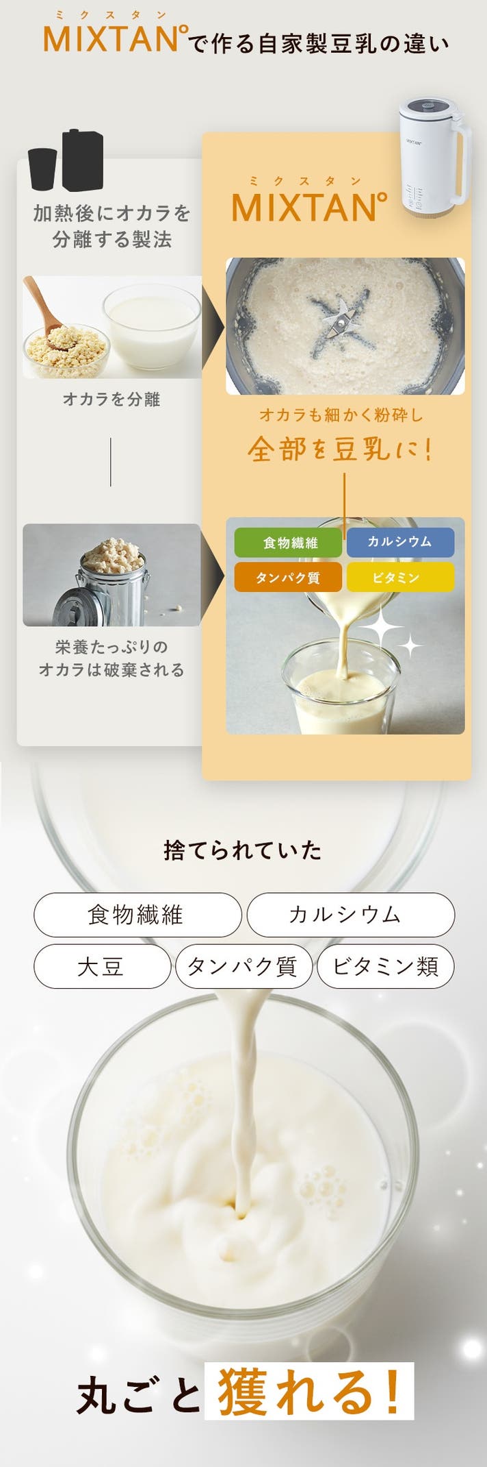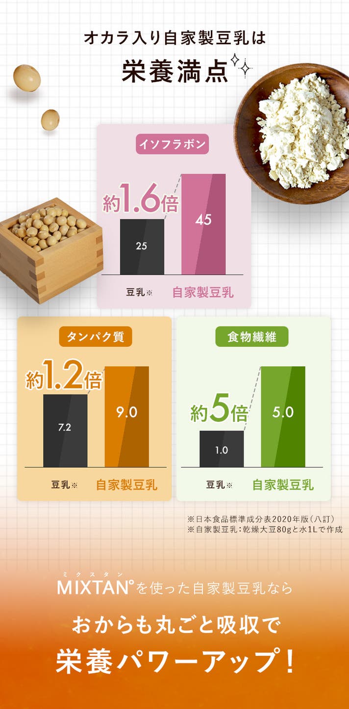 - 【美味しくて栄養満点】大豆をまるごとすりつぶすから、おからを濾す手間も不要!