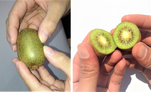 一口サイズのかわいいキウイで、ナイフを使わなくても手でふたつに割って吸い出すようにしても食べらる手軽なフルーツになりました。もちろんスプーンで余す所なく食べてもらうのもOKです。まずはこの新しいジャンルのキウイフルーツ「さぬきキウイっこ®」を食べてもらいたいでです!