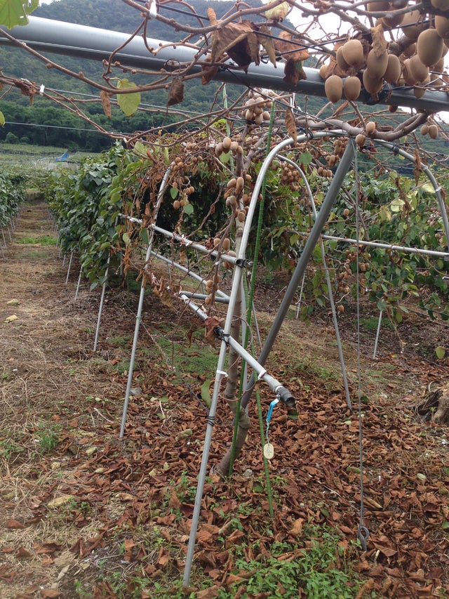 異常気象の大雨と夏の高温でキウイの樹がどんどんと枯れていき、雨と暑さに負けない強い樹を来ることが命題となっています。