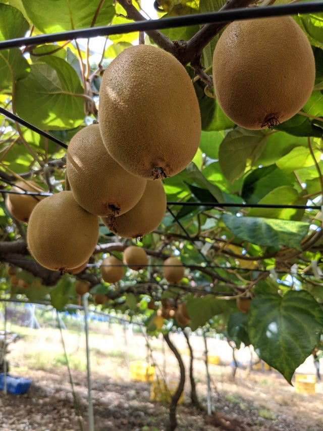 香川県善通寺市の畑まで来ていただかないと食べてもらえませんが、ぜひ畑のキウイと僕たちに会いに来てもらえたら嬉しいです。