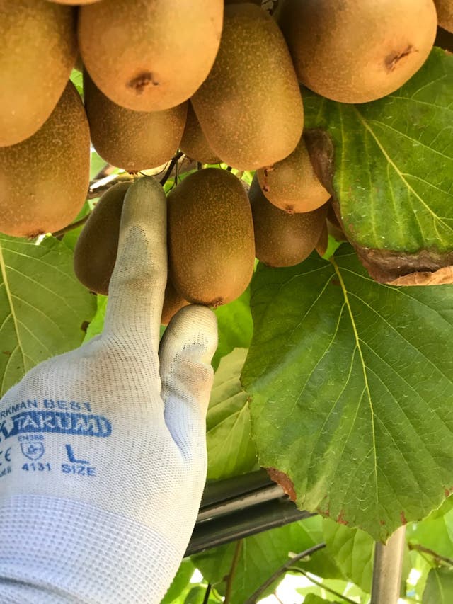 集中豪雨や猛暑に振り回されながら毎日キウイのお世話をして秋が来ると10日ずつくらいで抜き打ち糖度検査をします。順調に糖度が上がってきたら日照時間など参考にして収穫日を決めます。10月中旬から下旬ごろにようやく収穫になるのです!
