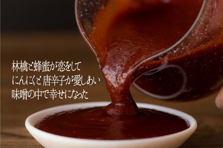 辛味噌をベースに厳選されたりんご果汁、はちみつ、味噌、にんにく、唐辛子、をバランスよくブレンドした旨辛調味料です。これまでにないハーモニーが、あなたの舌を驚かせます。