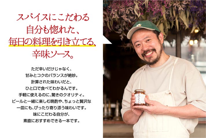僕は辛いものが苦手でした。そんな自分が「美味しい」と心からいえる商品を作ってこそ、お客様に真摯にお伝えできる。その商品として行き着いたのが「辛味噌ベース」のたれでした。