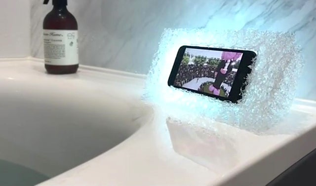 モバイルフォンスタンド本体は水に濡れてもご使用でき、お風呂やアウトドアでもご使用いただけます。また、汚れても水洗いで綺麗になります。