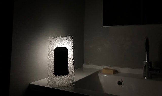 モバイルフォンのバックライトを使い点灯させると、美しい陰影と共に間接照明としてもご使用いただけます。