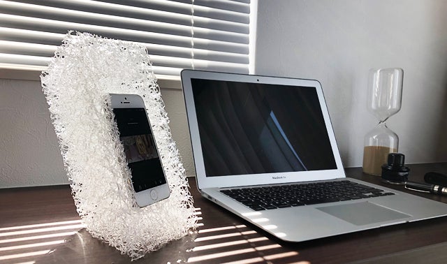 このモバイルフォンスタンド は、iPhone 6/7/8/ XS/XR用のスタンドで、アシンメトリーな彫刻的フォルムによって、縦横どちらの向きでも快適な角度でご使用できるモバイルフォン用スタンドです。