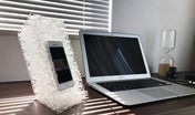 モバイルフォンのセットの仕方と、置き方、ホールド感や素材感をご覧ください。