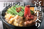 - 全国の百貨店バイヤーお墨付きのもつ鍋に宮崎牛を入れることで・・・究極の牛鍋へ進化します!