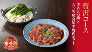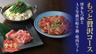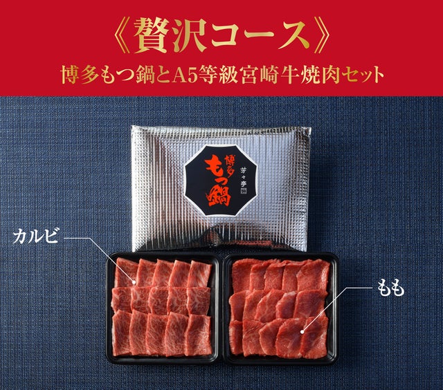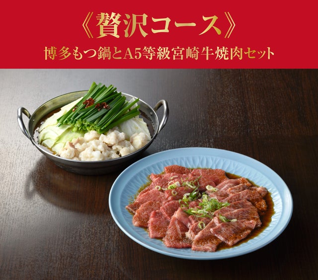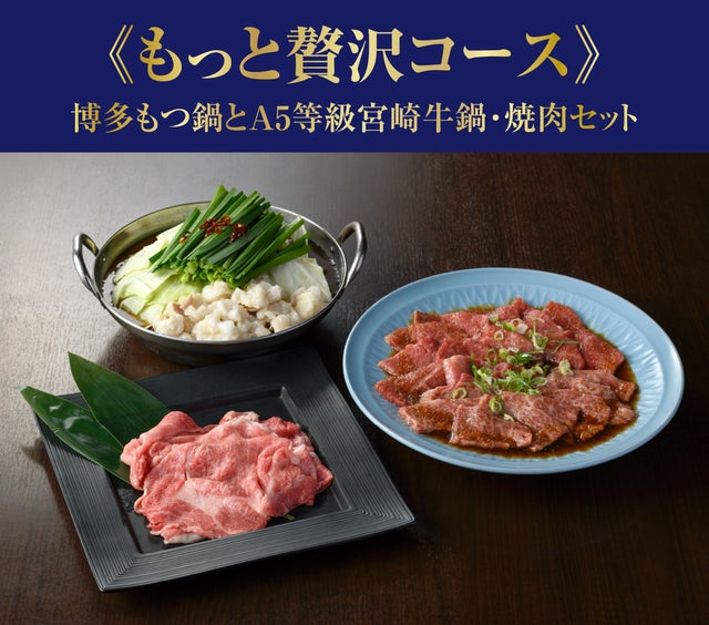 《贅沢コース》博多もつ鍋とA5等級宮崎牛焼肉セット