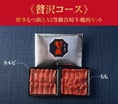 ②もっと贅沢コース→博多もつ鍋3人前(国産牛ホルモン200g×2、スープ×1、ちゃんぽん麺150g×2)・宮崎牛特選スライス肩ロース(すき焼き・しゃぶしゃぶ用)300g・宮崎牛カルビ300g・宮崎牛もも300g